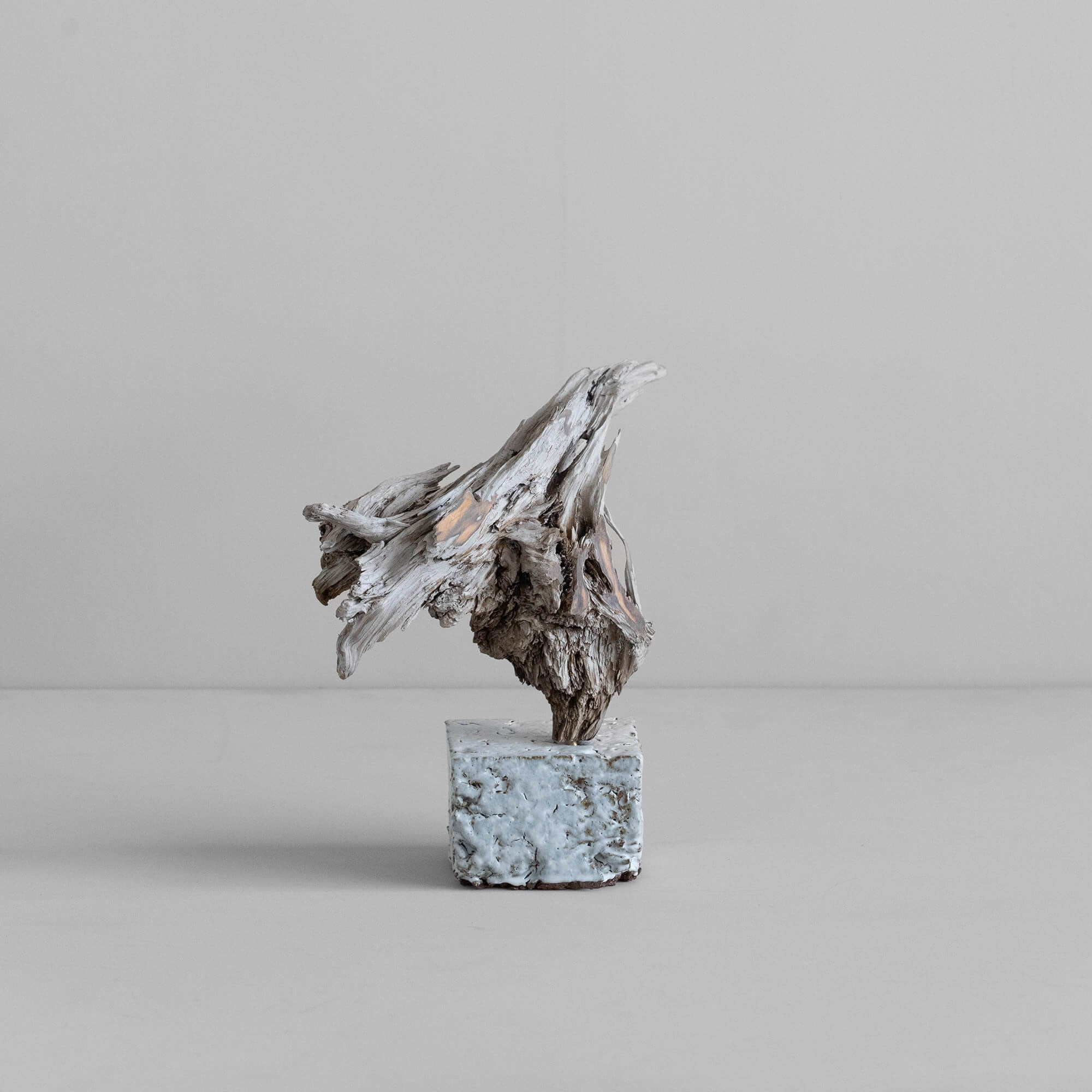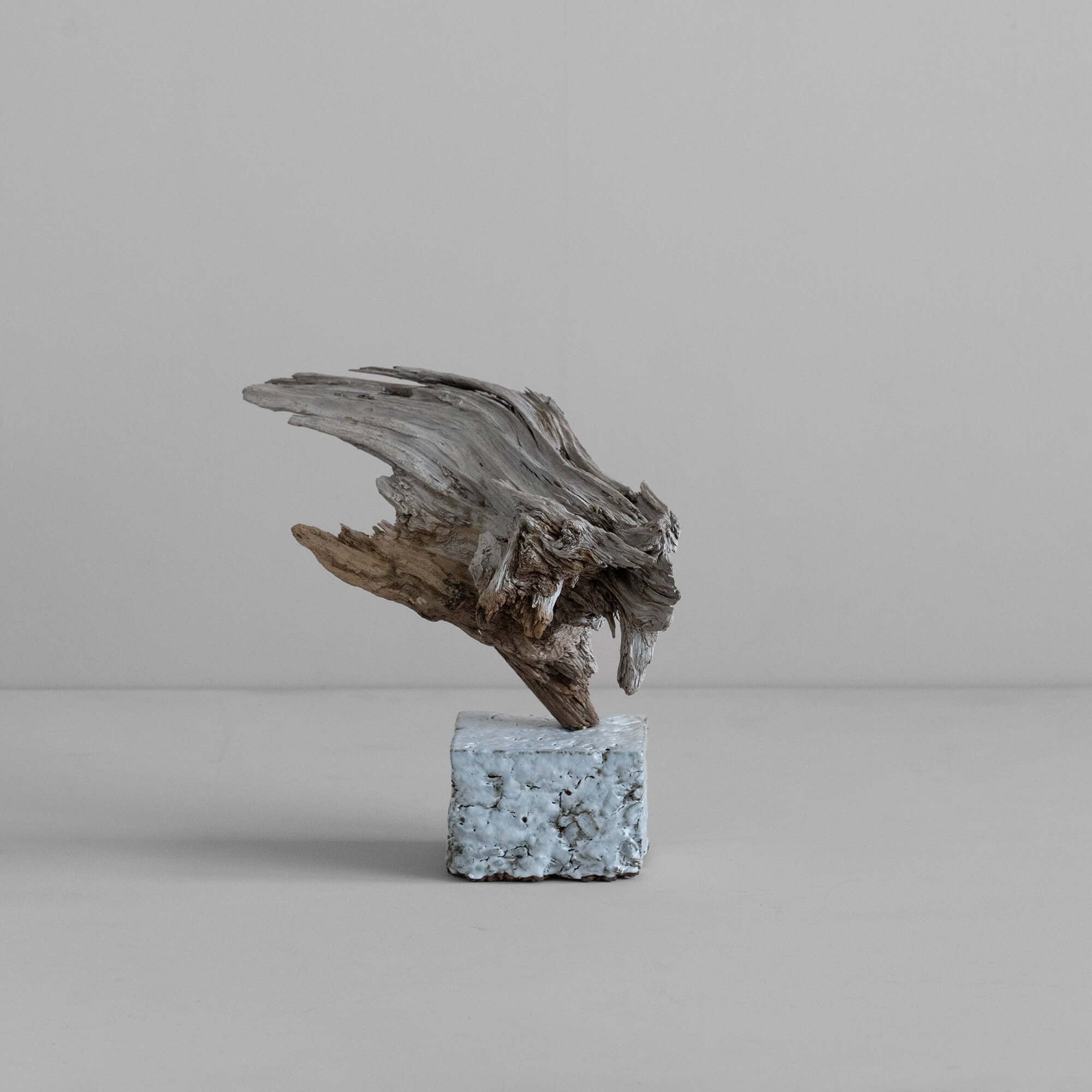 流木に備わった不均一さ、ゆがみ、欠け、癖。それらは従来の「設計とコントロール」の枠からはみ出した、“計画外の美” を孕んでいます。本企画では、各作家の技法と、流木の“雑味を含んだ形”を掛け合わせ、自然とデザインのバランス点を探る試みを行いました。
